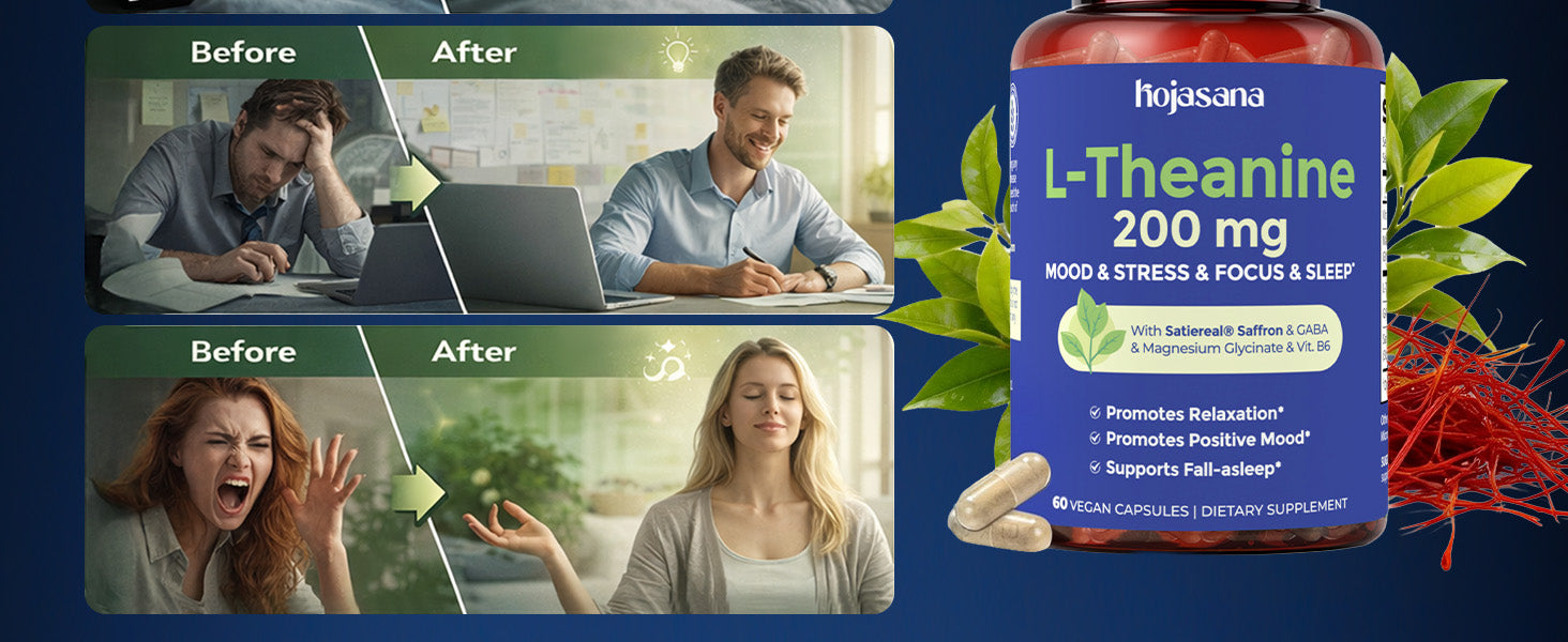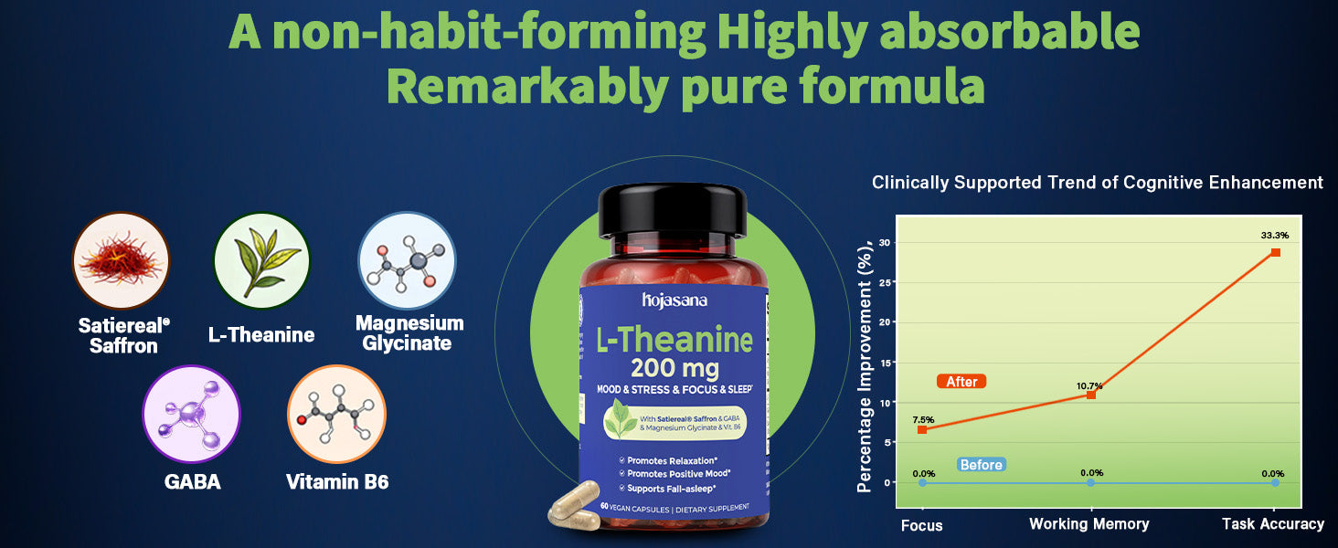 - High-Quality, Natural Ingredients : Good Health from the Source, Formulated using pure ingredients, the L-Theanine supplement is free from unnecessary additives and common allergens,non-GMO , gluten-free ,100% VEGAN Formula
