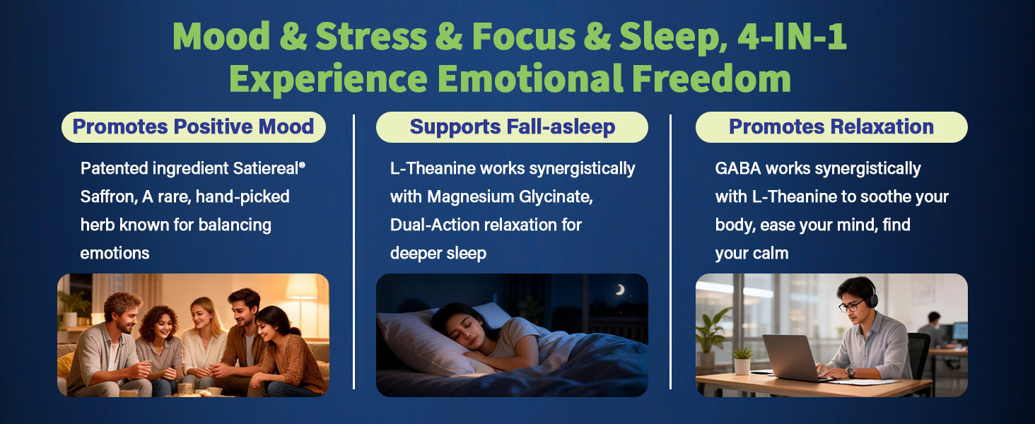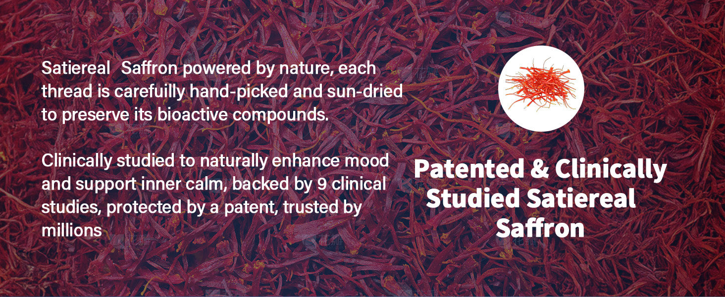 Patented ingredient Satiereal Saffron: Clinically researched patented Satiereal Saffron helps balance emotions,combine with natural sources L-Theanine, they are nature's gift for relaxation, enabling you to face each day with a brighter, more peaceful mindset, Trusted by Millions,Synergistically supports alertness and relaxation
