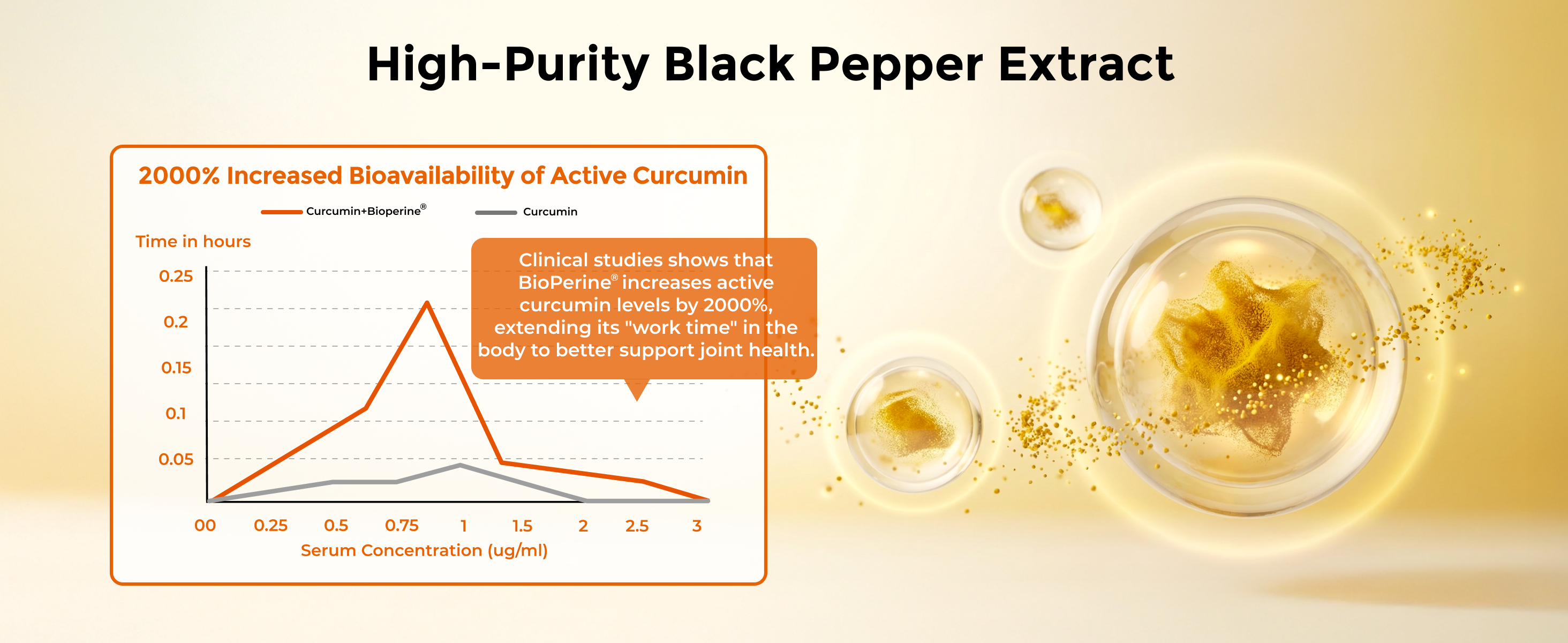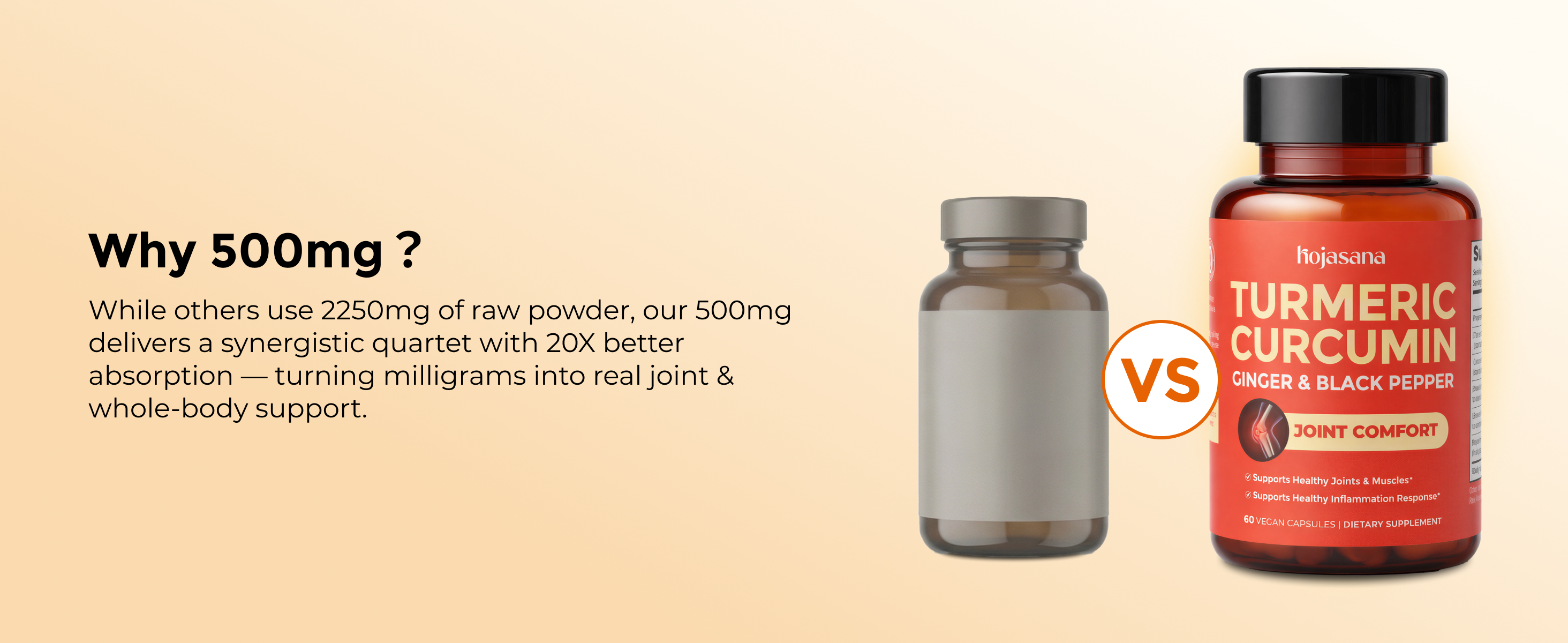 - 95% Curcuminoids 20X Absorption: Formulated with turmeric extract standardized to 95% curcuminoids—the industry gold standard for potency. Clinical studies show patent black pepper extract boosts active curcumin levels by 2000%, extending availability in the body for superior absorption and more effective joint support.